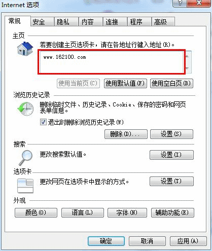 2)然后在打开的对话窗口中的主页栏的地址输入框中输入“http://hi.shukuonline.com/”,然后点击窗口上方的“应用”按扭即可,如下图所示: